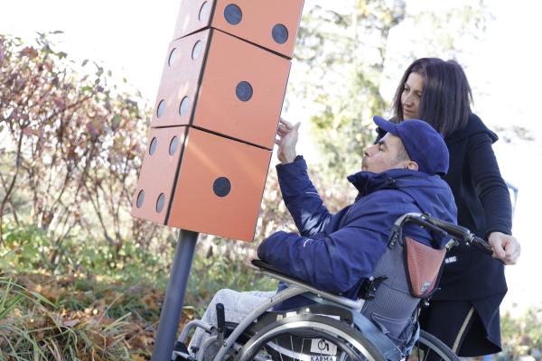 - Urządzenie nie posiada barier w dostępie, zarówno fizycznych, jak i poznawczych. Z urządzenia mogą korzystać osoby o różnym poziomie sprawności oraz osoby pełnosprawne, w różnych konfiguracjach względem tych użytkowników. Urządzenie nadaje się do korzystania przez osoby na wózkach inwalidzkich, z niepełnosprawnością intelektualną. Urządzenie jest także przyjazne dla osób z problemami z widzeniem, ponieważ grafika jest wyfrezowana w płycie (linia grafiki jest wklęsła).