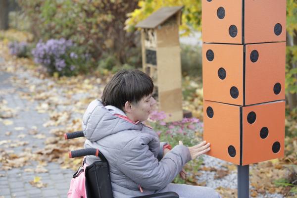 - Urządzenie nie posiada barier w dostępie, zarówno fizycznych, jak i poznawczych. Z urządzenia mogą korzystać osoby o różnym poziomie sprawności oraz osoby pełnosprawne, w różnych konfiguracjach względem tych użytkowników. Urządzenie nadaje się do korzystania przez osoby na wózkach inwalidzkich, z niepełnosprawnością intelektualną. Urządzenie jest także przyjazne dla osób z problemami z widzeniem, ponieważ grafika jest wyfrezowana w płycie (linia grafiki jest wklęsła).