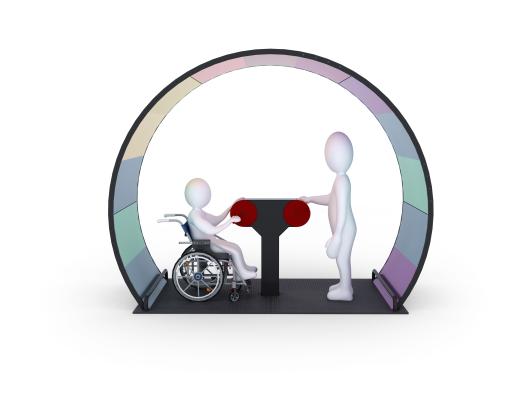 - Na urządzeniu jednocześnie mogą bawić się osoby z niepełnosprawnością, także na wózkach inwalidzkich, razem z osobami pełnosprawnymi w różnej konfiguracji tych użytkowników.