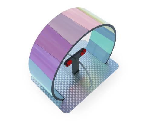 | Stymulacja układ nerwowego w przypadku porażeń i niedowładów. Możliwość wykonywania ruchów wspomaganych w sytuacji, gdy rotor napędza użytkownik pełnosprawny, a osoba z niepełnosprawnością wykonuje ruch bez użycia siły, ale dzięki temu odtwarza kontrolę nerwowo-mięśniową. Wskazaniem do stosowania rotorów są: stwardnienie rozsiane, stany po udarze mózgu, przy porażeniu dwukończynowym, porażeniu spastycznym, chorobie Parkinsona oraz innych chorobach neurologicznych i mięśniowo — neurologicznych. Dodatkowo zmieniające się kolory obracającego się koła urządzenia stymulują układ nerwowy pod kątem odbierania bodźców sensorycznych w stanach zaburzeń integracji sensorycznej. Napędzanie ruchu urządzenia siłą własnych mięśni daje poczucie sprawczości, które jest bardzo ważne w terapii niepełnosprawności intelektualnych, a także daje możliwość treningu samodzielności. | Mechanizm rotoru rehabilitacyjnego pozwala na wprowadzenie w ruch obrotowy kolorowego koła urządzenia przy użyciu manetek napędzanych siłą kończyn górnych. W ruch zaangażowanych jest szereg grup mięśniowych kończyn górnych - agonistycznych i antagonistycznych – współdziałających ze sobą oraz wykonujących ruch przeciwny – wyprost/ zgięcie (w stawie barkowym, łokciowym oraz nadgarstkowym). Możliwość wykonywania ruchów wspomaganych w sytuacji, gdy rotor napędza użytkownik pełnosprawny, a osoba z niepełnosprawnością wykonuje ruch bez użycia siły, ale dzięki temu odtwarza zakresy prawidłowe zakresy ruchu w stawach, pracuje nad koordynacją ruchu naprzemiennego. |