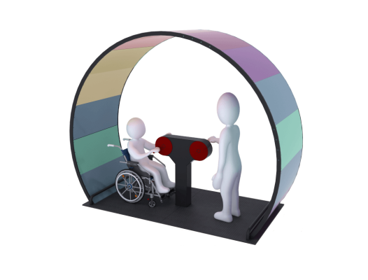 - Dla osób z niepełnosprawnościami szczególnie cenny jest aspekt „sprawczości” polegający na wprawianiu koła w ruch poprzez wykonywanie ćwiczeń na rotorze do kończyn górnych.