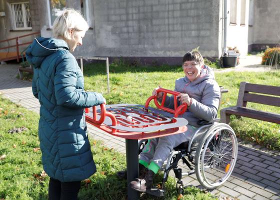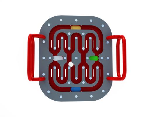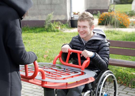- Urządzenie przeznaczone jest do treningu motoryki, równowagi, koncentracji, rozpoznawania kolorów oraz do zabawy i rywalizacji. Stanowi atrakcyjny i angażujący element wyposażenia placu zabaw. Dla osób z niepełnosprawnościami szczególnie cenny jest aspekt „sprawczości”, czyli wpływu poprzez ruch stołem labiryntu na ruch i kierunek tego ruchu toczącej się kuli. Ergonomiczne rękojeści dają możliwość wygodnego chwytu i przeznaczone są dla osób o różnym poziomie sprawności kończyn górnych.