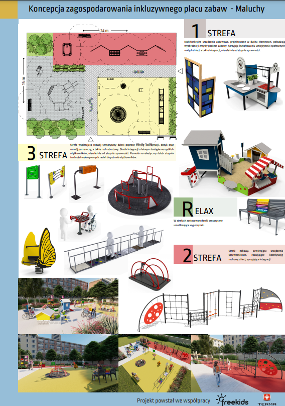 Ważną kwestią jest możliwość zapewnienia równego dostępu do zabawy dzieciom pełnosprawnym oraz z różnego rodzaju niepełnosprawnościami.