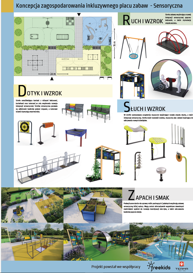 Zapraszamy do pobrania gotowego projektu koncepcyjnego Sensorycznego placu zabaw o przykładowych wymiarach.