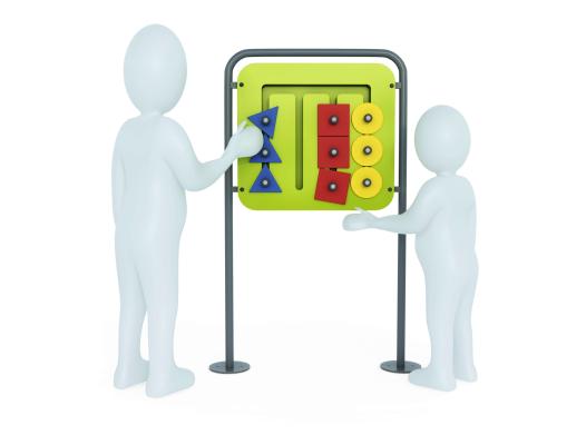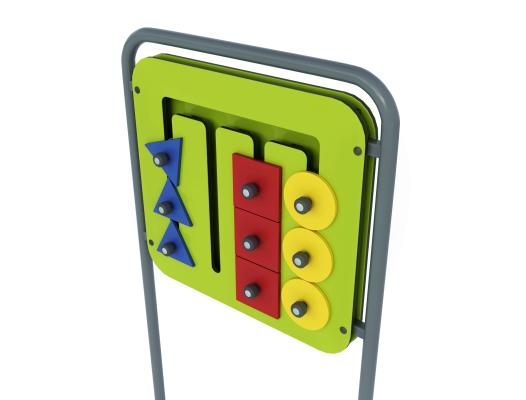 Tablica integracyjna Geometryczna to urządzenie dedykowane do użytku na zewnątrz pomieszczeń; na placach zabaw ogólnodostępnych i prywatnych, siłowniach zewnętrznych, w parkach oraz przydomowych terenach zielonych w celu zapewnienia możliwości jednoczesnej zabawy osobom pełnosprawnym oraz użytkownikom na wózkach inwalidzkich.