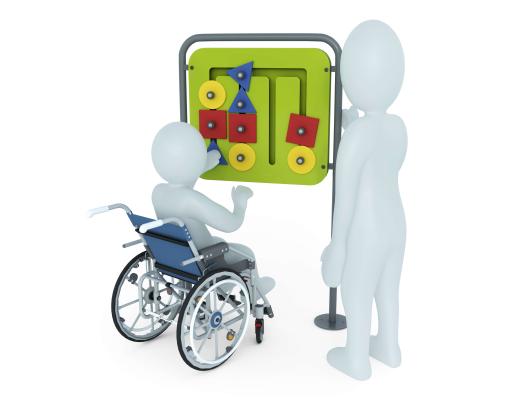 Tablica integracyjna Geometryczna TERMA to urządzenie dające możliwość zabawy i terapii na placu zabaw. Urządzenie ma na celu stworzenie warunków do integracji osób pełnosprawnych oraz z niepełnosprawnością ruchową (poruszających się na wózkach inwalidzkich), wpływając na rehabilitację społeczną oraz poznawczą.