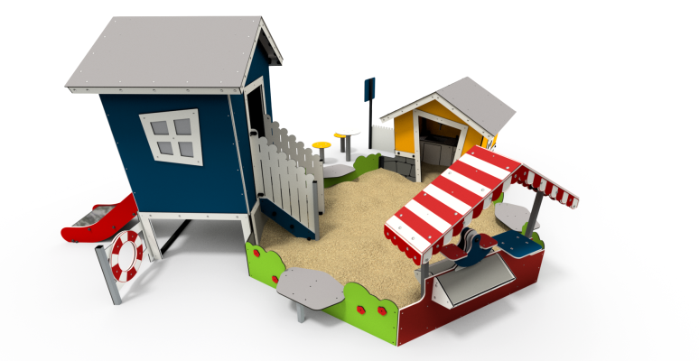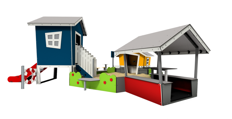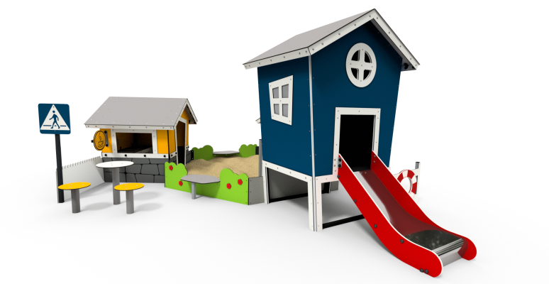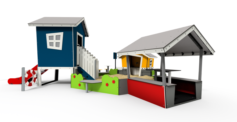 Zestaw Sand City 3 to propozycja na standardowe plac zabaw. Polecany zarówno na publiczne place zabaw, jak i do szkół podstawowych oraz przedszkoli.